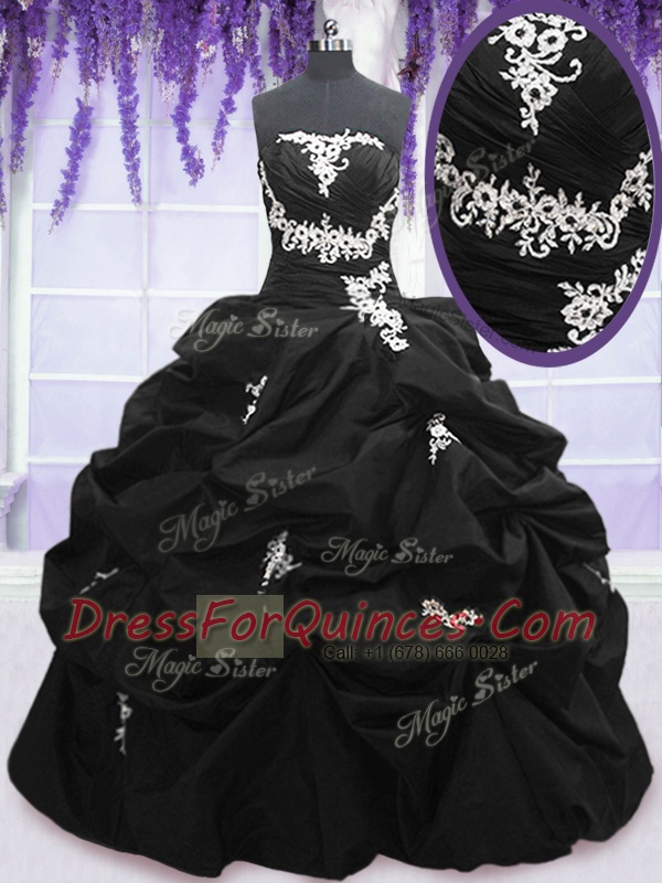 Most Popular Appliques and Pick Ups Quinceanera Dress Black Lace Up Sleeveless Floor Length