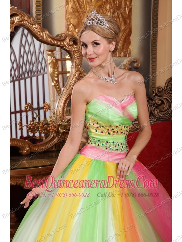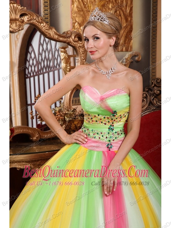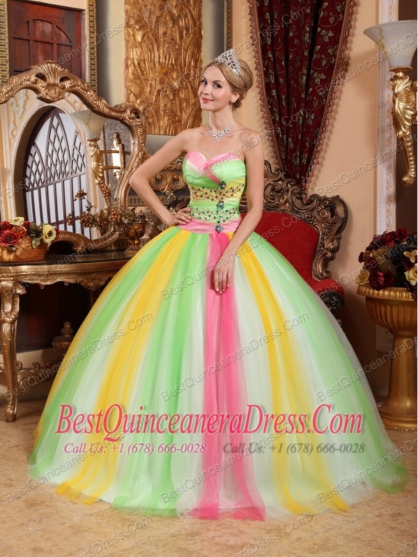 Multi-color Ball Gown Sweetheart Floor-length Tulle Beading Quinceanera Dress