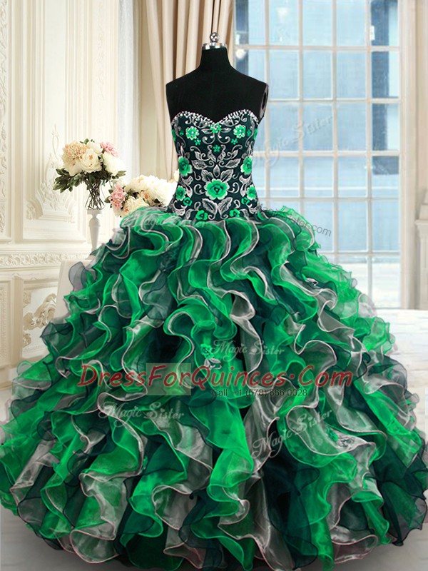 Multi-color Lace Up Sweet 16 Dresses Beading and Ruffles Sleeveless Floor Length