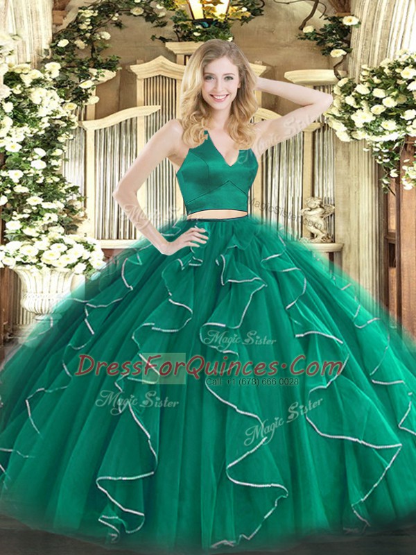 Nice Dark Green Sleeveless Ruffles Floor Length Vestidos de Quinceanera