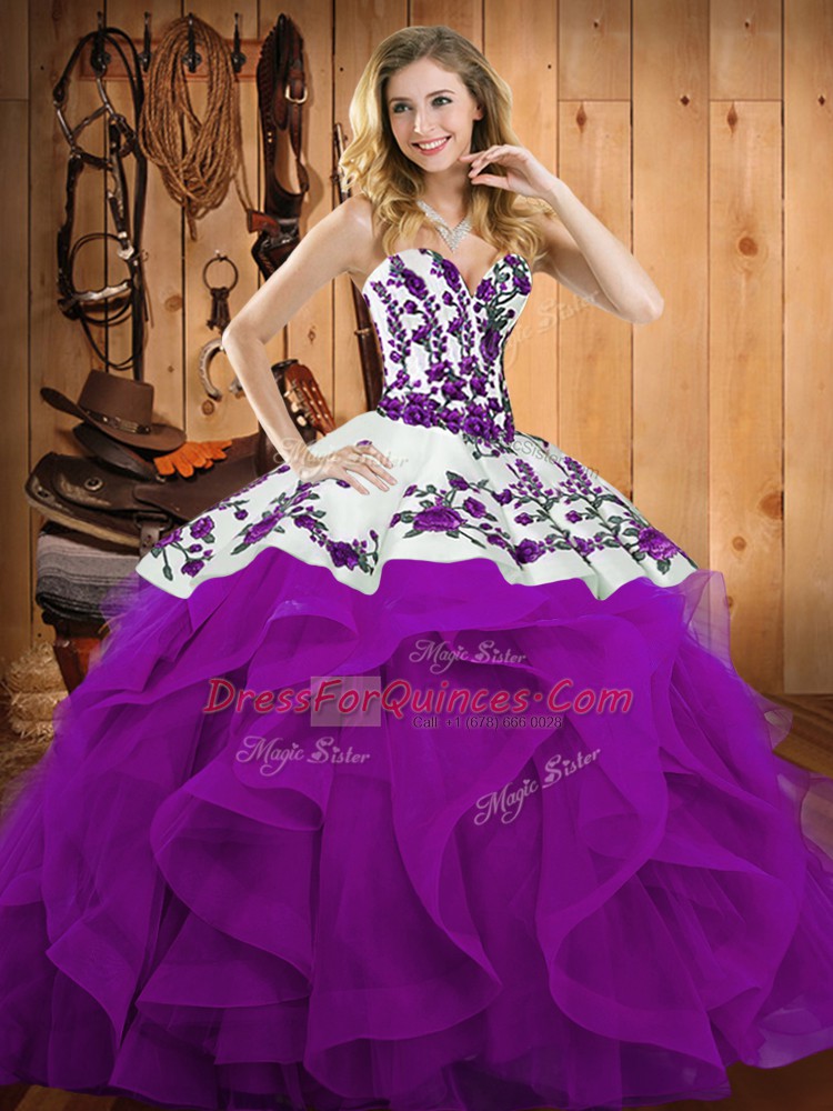 Nice Floor Length Eggplant Purple Ball Gown Prom Dress Sweetheart Sleeveless Lace Up