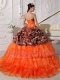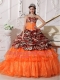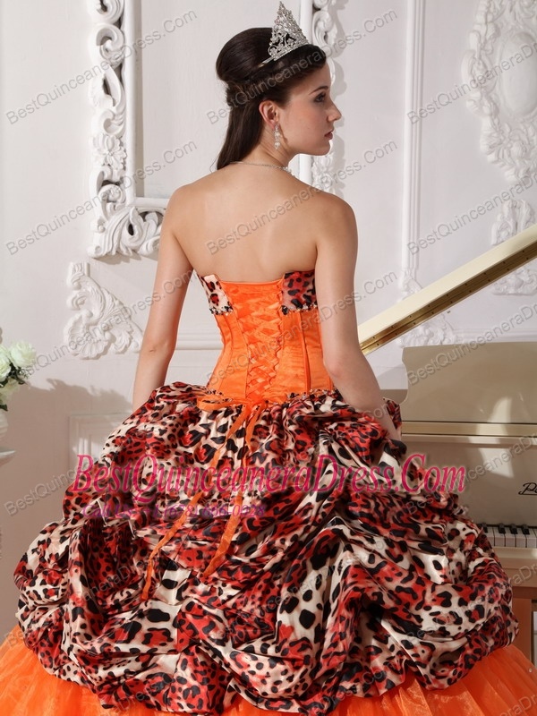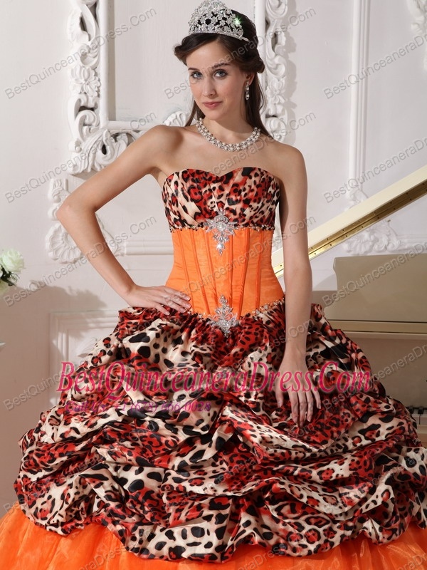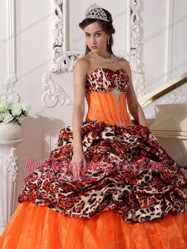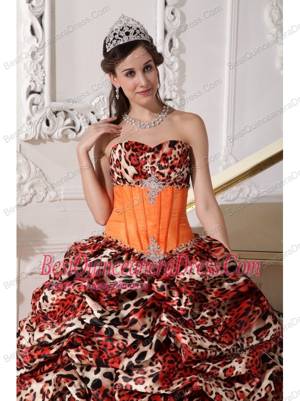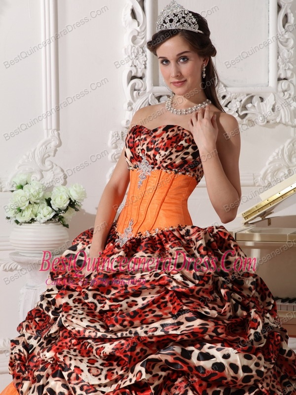 OraLeopard and Organza Quinceanera Dress Sweetheart Sweep / Brush Train Appliques Ball Gown