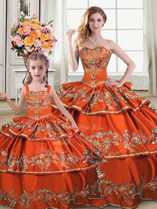 Orange Sleeveless Satin and Organza Lace Up Quinceanera Gown for Sweet 16 and Quinceanera
