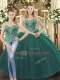 Pretty Dark Green Lace Up Sweetheart Beading Quince Ball Gowns Tulle Sleeveless