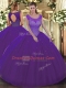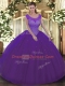 Purple Ball Gowns Scoop Sleeveless Tulle Floor Length Backless Beading Sweet 16 Dress