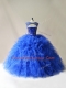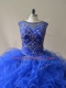 Royal Blue Scoop Lace Up Beading and Ruffles Quinceanera Gown Sleeveless