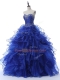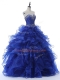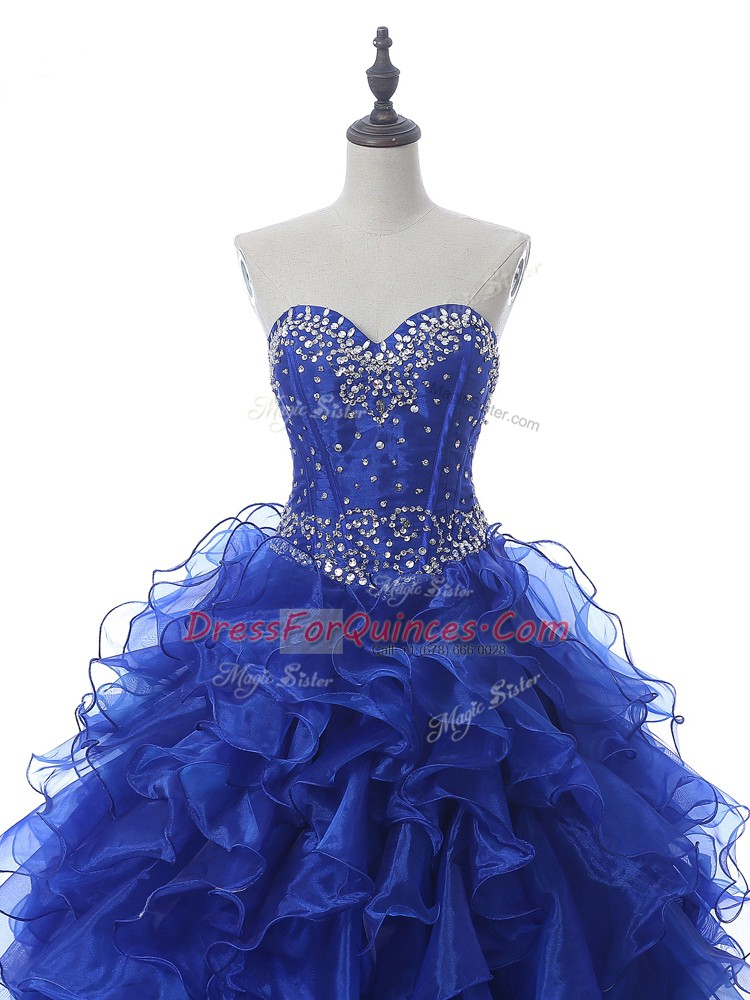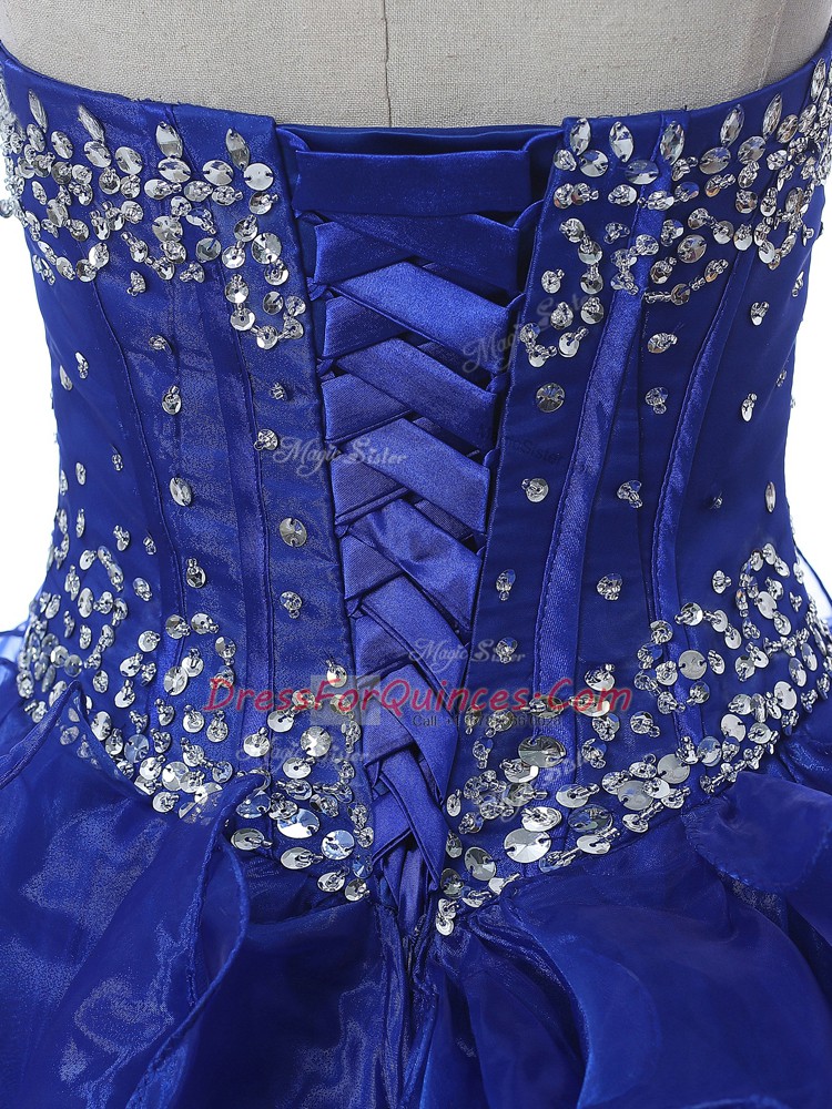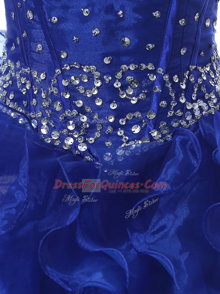 Royal Blue Sleeveless Organza Lace Up Quinceanera Dress for Military Ball and Sweet 16 and Quinceanera