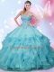 Sexy Floor Length Aqua Blue Quinceanera Gown Sweetheart Sleeveless Lace Up