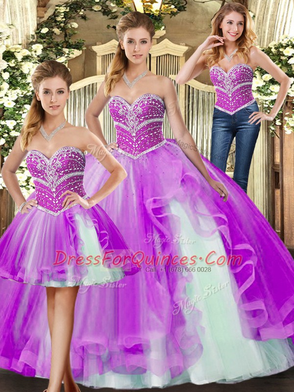 Shining Lilac Sleeveless Beading Floor Length Quinceanera Dresses