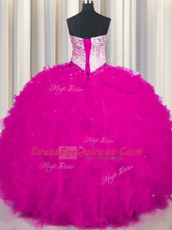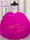 Simple Floor Length Fuchsia Quinceanera Gown Tulle Sleeveless Beading and Ruffles