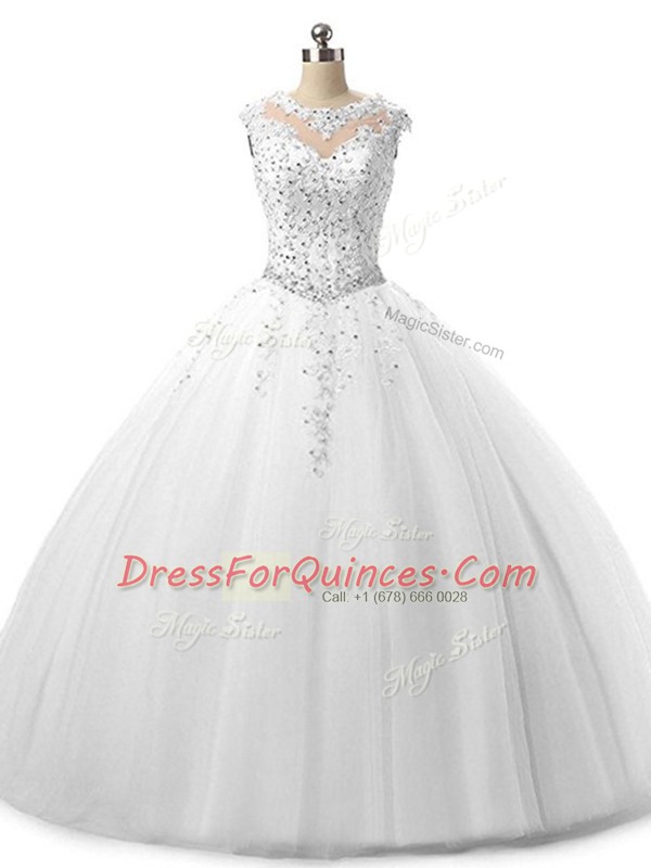 Simple Sleeveless Lace Up Floor Length Beading and Lace Sweet 16 Dress