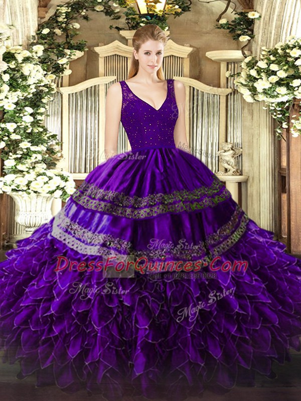 Sleeveless Beading and Lace and Ruffles Backless Quinceanera Gowns