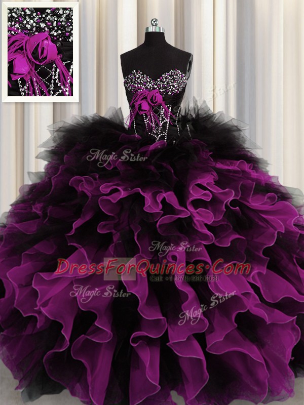 Sleeveless Beading and Ruffles Lace Up Quinceanera Gown