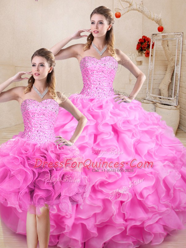 Sleeveless Beading and Ruffles Lace Up Sweet 16 Dress