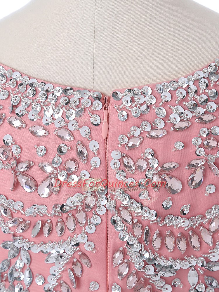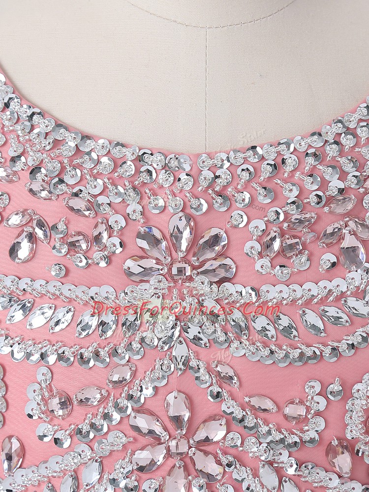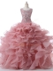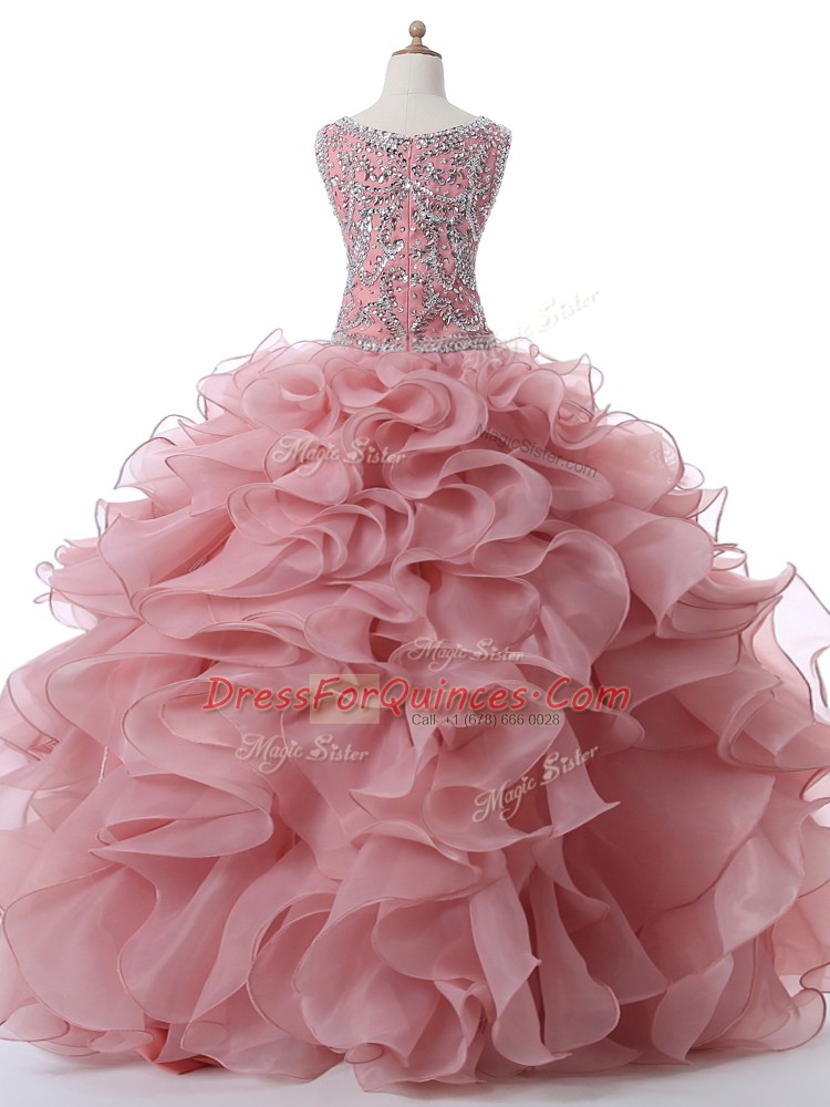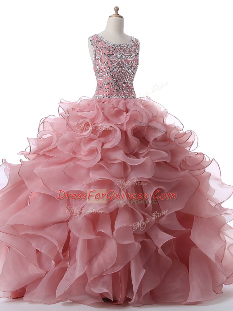 Sleeveless Floor Length Beading and Ruffles Zipper Vestidos de Quinceanera with Pink