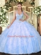Super Floor Length Light Blue Quinceanera Gowns Tulle Sleeveless Beading