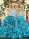 Teal Ball Gowns Straps Sleeveless Organza Floor Length Lace Up Beading and Appliques and Ruffles Sweet 16 Dresses