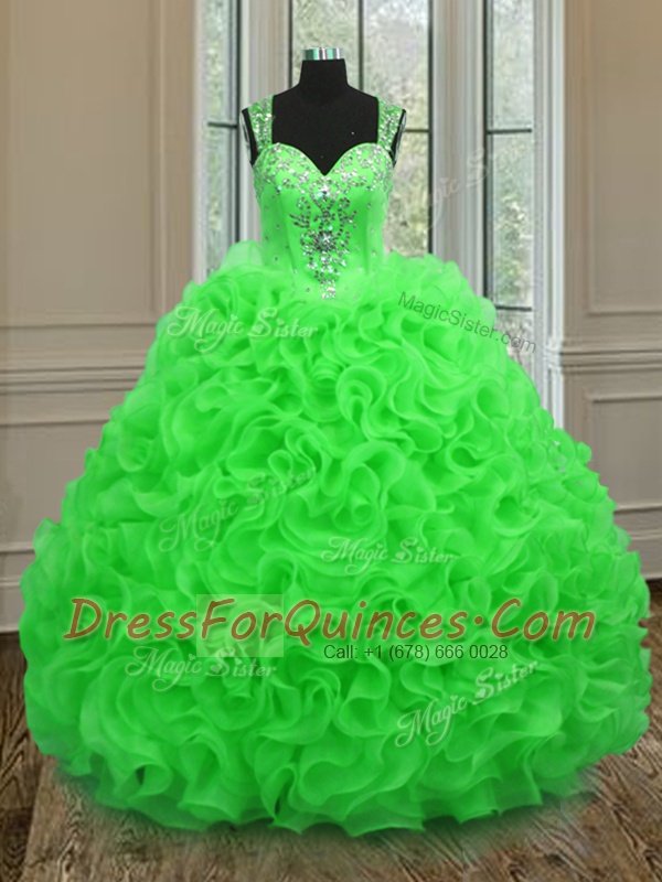 Top Selling Straps Neckline Beading and Ruffles Quinceanera Gown Sleeveless Zipper