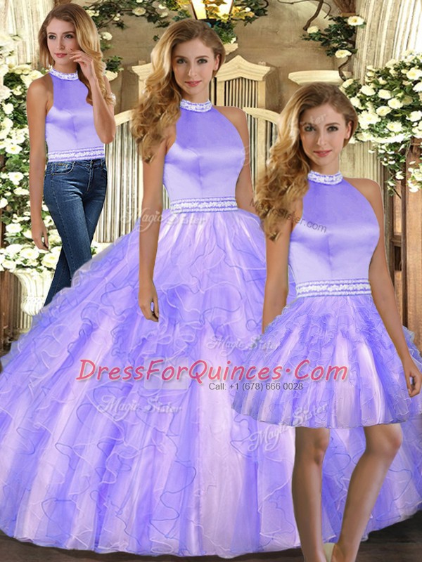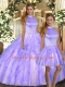 Tulle Halter Top Sleeveless Backless Beading and Ruffles Sweet 16 Dress in Lavender