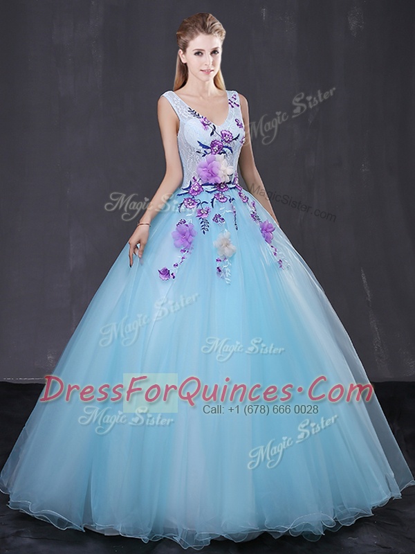 Tulle Sleeveless Floor Length Quinceanera Dress and Lace and Appliques