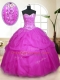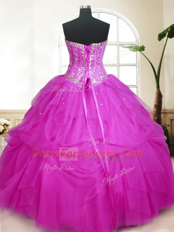 Tulle Sweetheart Sleeveless Lace Up Sequins and Pick Ups Quinceanera Dress in Fuchsia