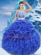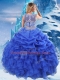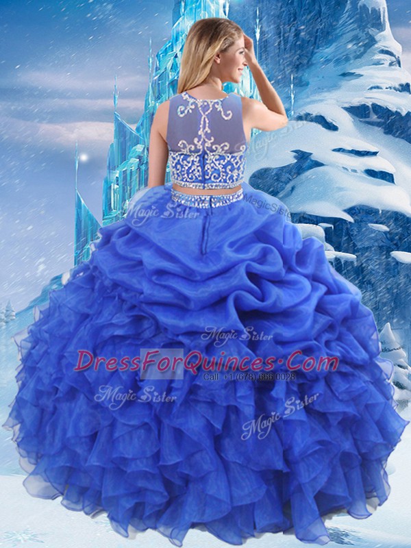 Unique Royal Blue Two Pieces Organza Scoop Sleeveless Beading and Ruffles and Pick Ups Floor Length Zipper Quinceanera Gowns