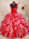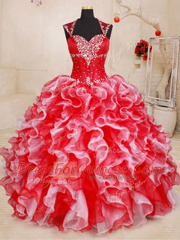 Vintage Straps Floor Length Ball Gowns Sleeveless White and Red Ball Gown Prom Dress Lace Up