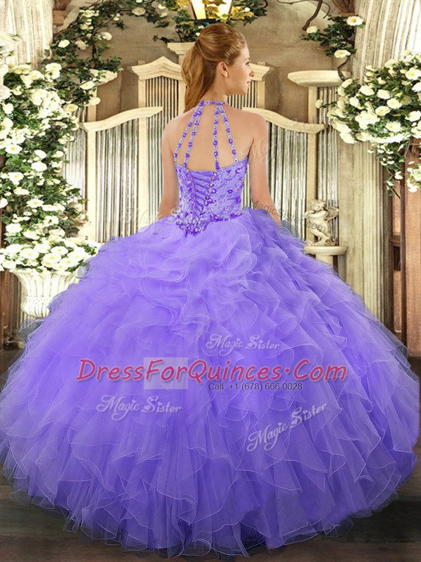 Watermelon Red Sleeveless Floor Length Beading and Embroidery Lace Up Quince Ball Gowns