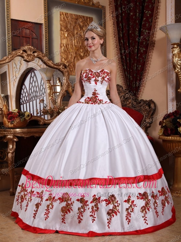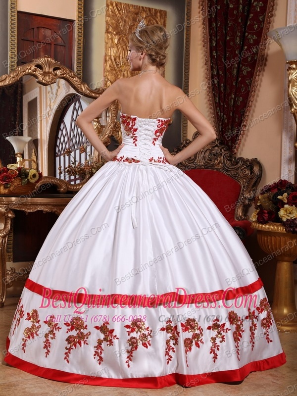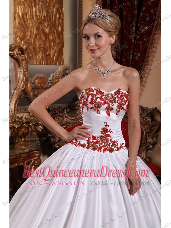 White Ball Gown Sweetheart Floor-length Taffeta Appliques Quinceanera Dress