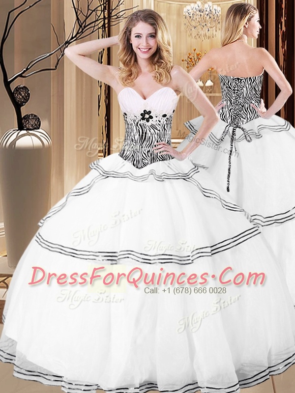 White Sleeveless Organza Lace Up 15 Quinceanera Dress for Military Ball and Sweet 16 and Quinceanera