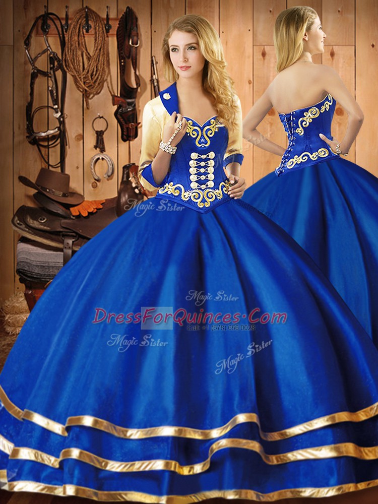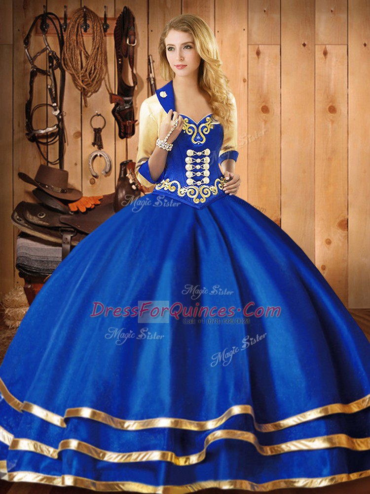 Wonderful Sleeveless Floor Length Embroidery Lace Up 15 Quinceanera Dress with Blue