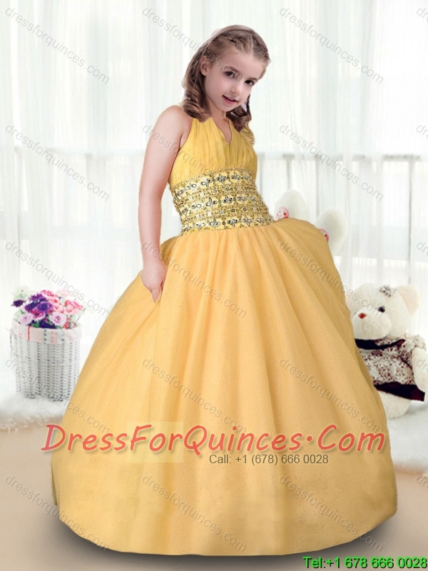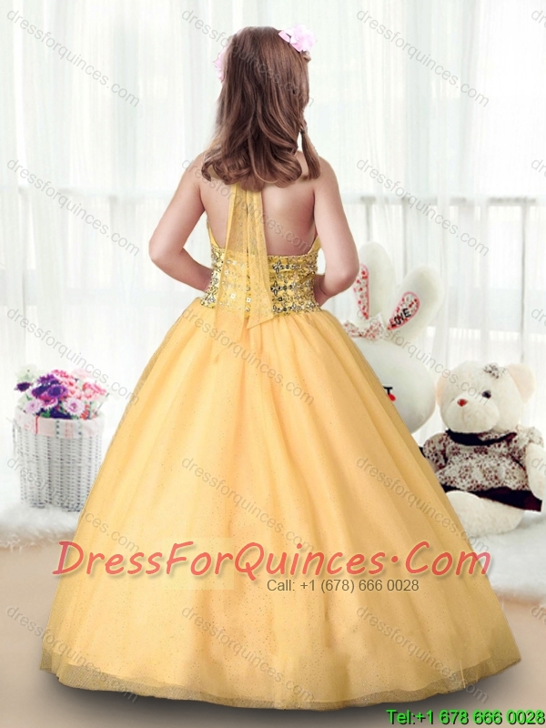 2015 Fall Beautiful Ball Gown Halter Top LMini Quinceanera Dresses in Gold
