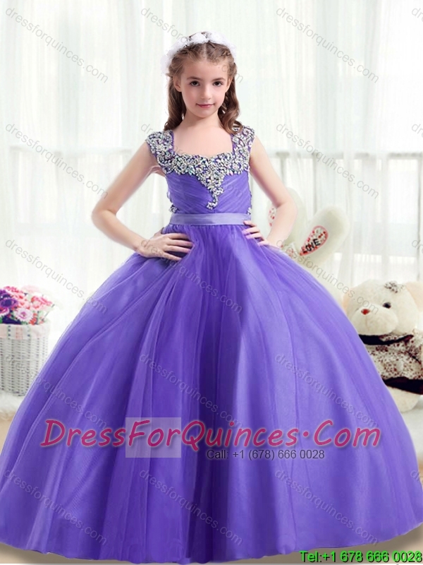 2015 Fall Classical Square Beading Mini Quinceanera Dresses with Cap Sleeves