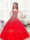 2016 Cute Ball Gown Straps Beading Red Mini Quinceanera Dresses