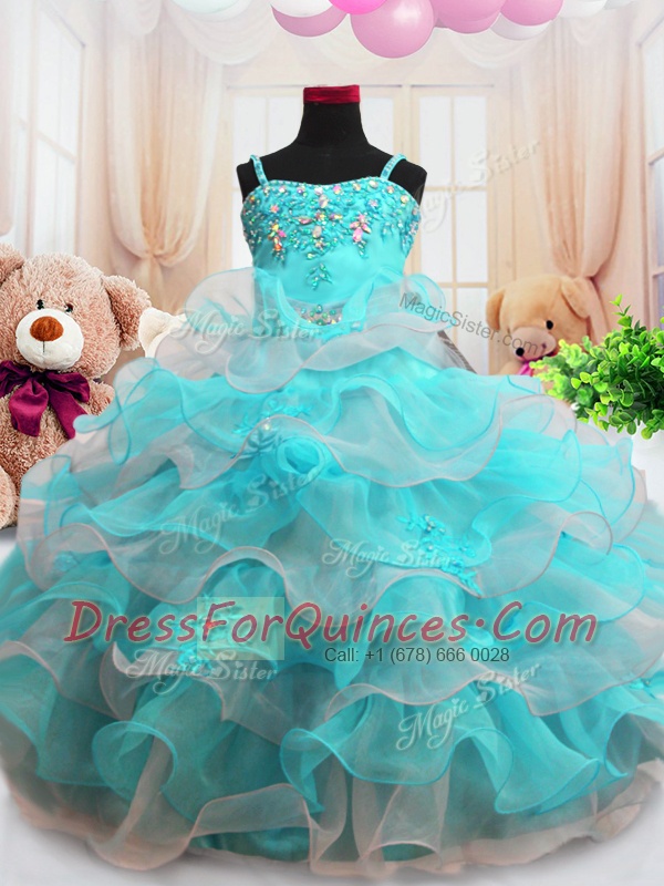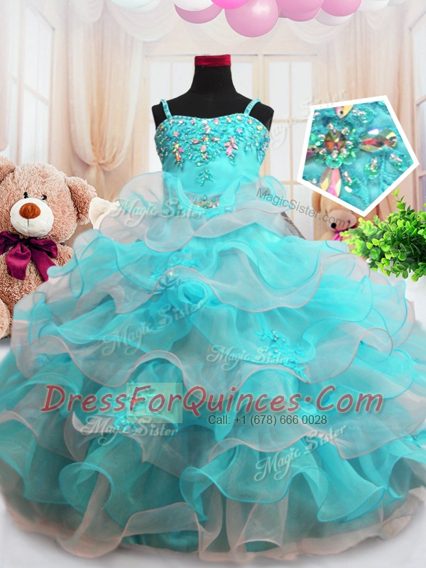 Adorable Organza Sleeveless Floor Length Toddler Flower Girl Dress and Beading and Ruffled Layers