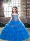 Affordable Blue Off The Shoulder Neckline Beading Girls Pageant Dresses Sleeveless Lace Up