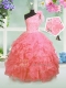 Amazing Watermelon Red Lace Up One Shoulder Beading and Ruffles Flower Girl Dresses for Less Organza Sleeveless