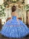 Aqua Blue Sleeveless Floor Length Ruffled Layers Lace Up Little Girls Pageant Dress