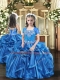Baby Blue Organza Lace Up Girls Pageant Dresses Sleeveless Floor Length Beading and Ruffles