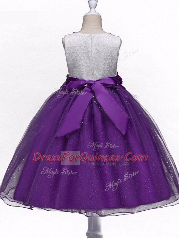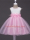 Baby Pink Ball Gowns Scoop Sleeveless Tulle Knee Length Zipper Lace and Hand Made Flower Kids Pageant Dress