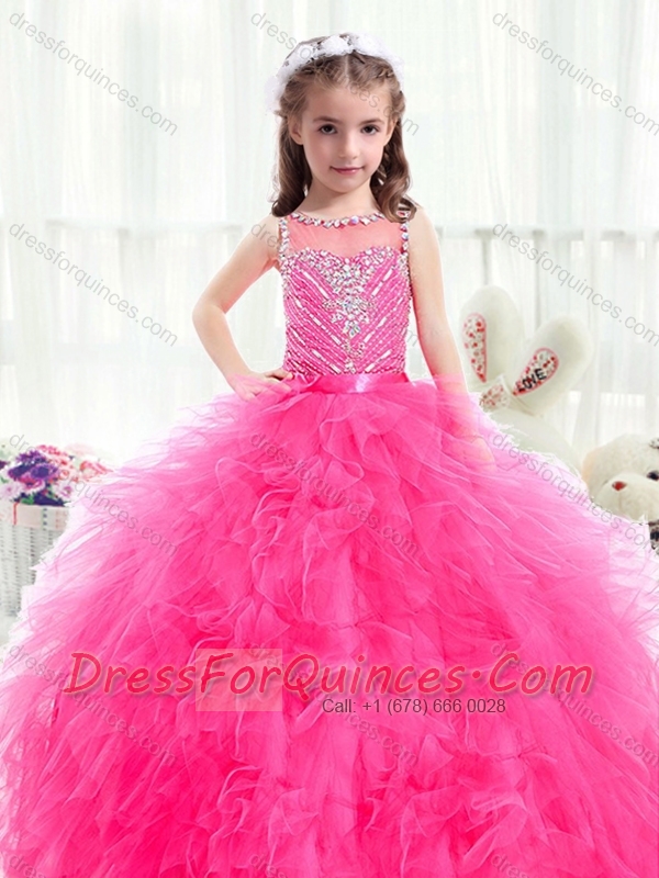 Beautiful Bateau Hot Pink Mini Quinceanera Dresses with Beading