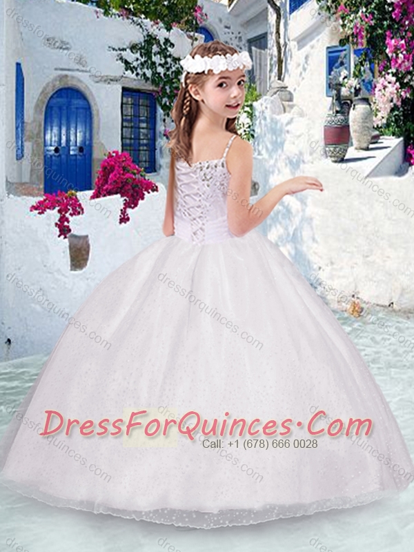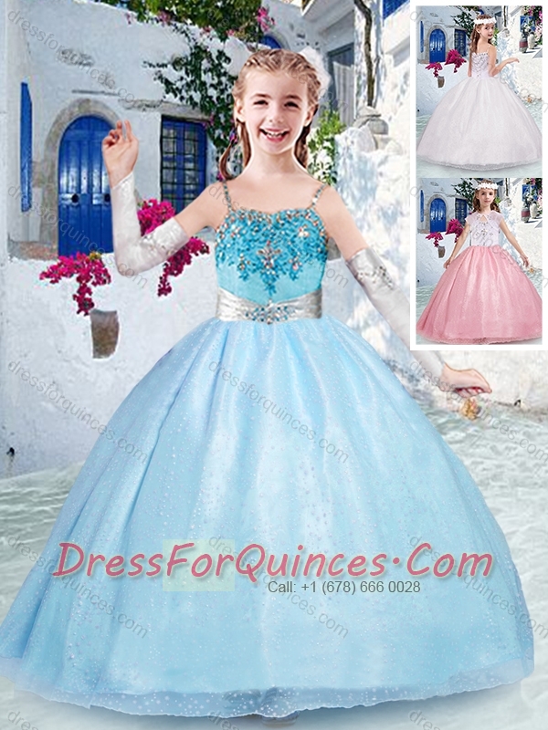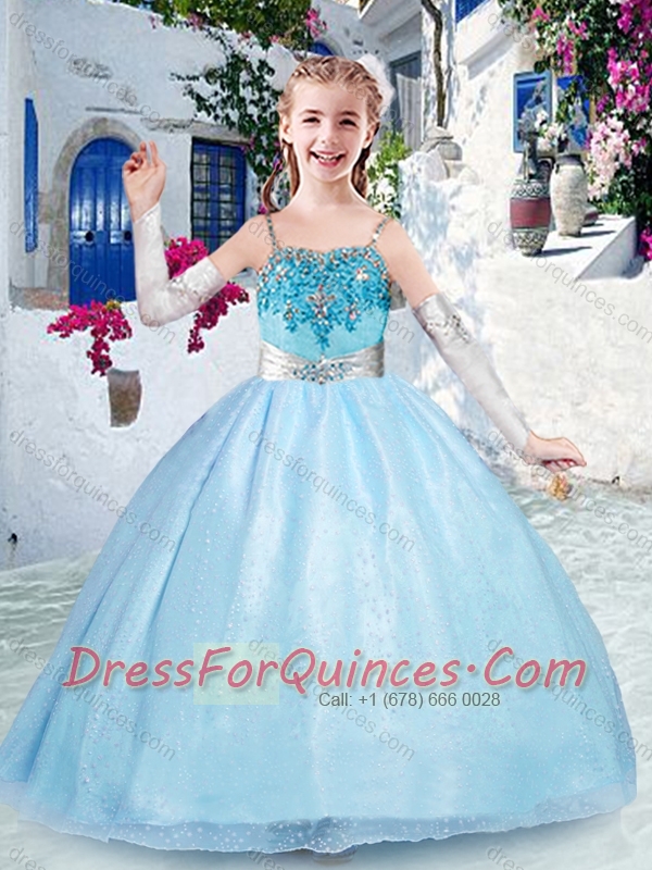 Beautiful Spaghetti Straps Light Blue Little Girl Pageant Dress with Beading