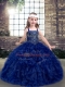 Best Blue Ball Gowns Organza Straps Sleeveless Beading and Ruffles Floor Length Lace Up Girls Pageant Dresses