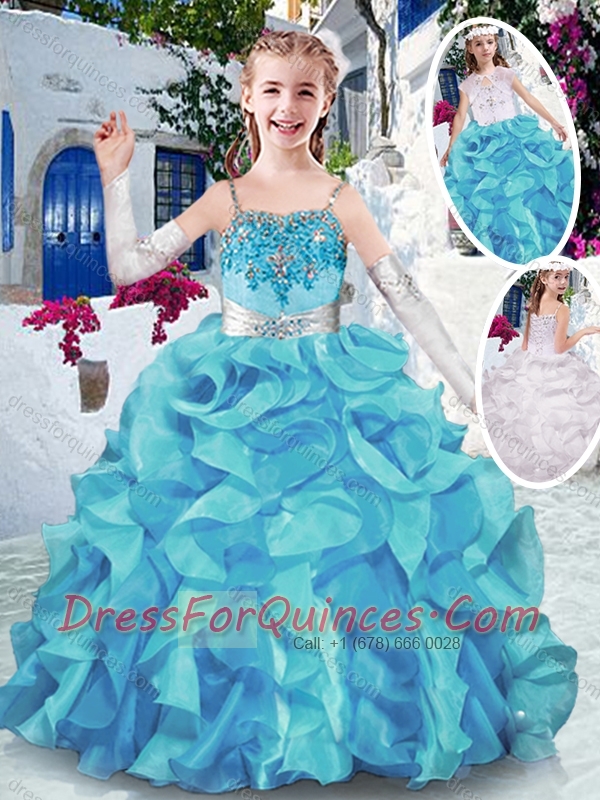 Best Spaghetti Straps Little Girl Pageant Dresses with Appliques and Ruffles