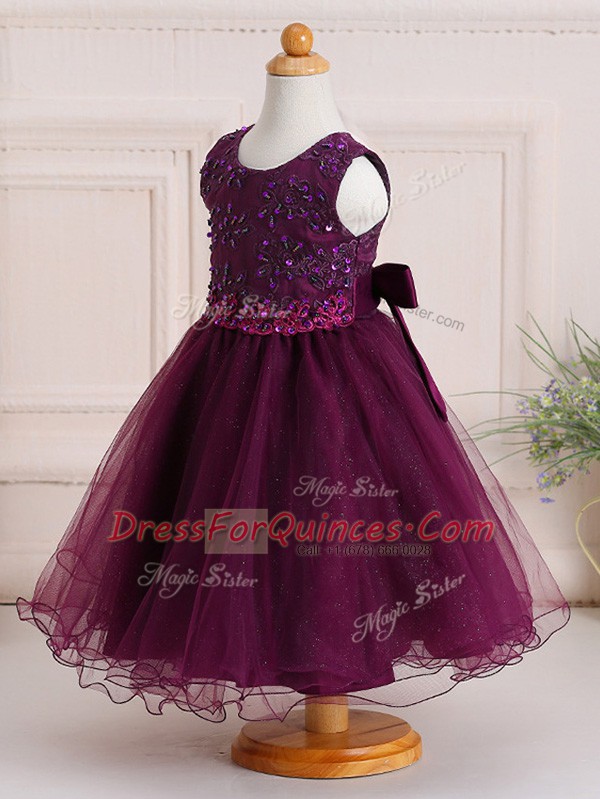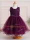 Burgundy Scoop Zipper Appliques Child Pageant Dress Sleeveless