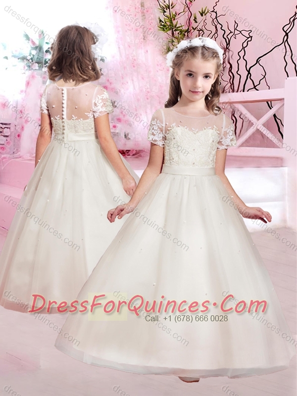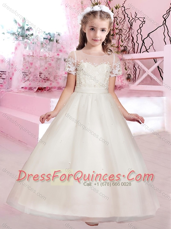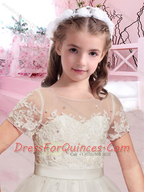 Cheap A Line Scoop Applique and Beaded Mini Quinceanera Dresses with Short Sleeves