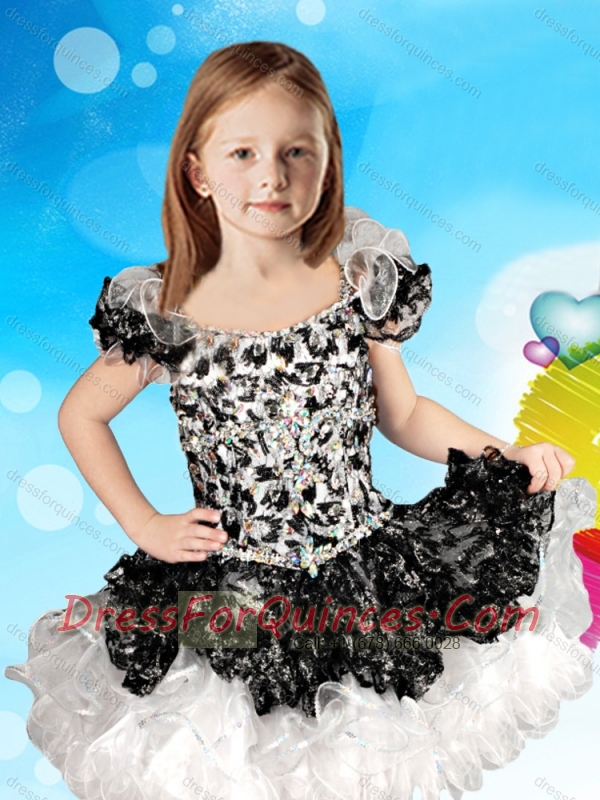 Cheap Beaded and Ruffled Straps Mini Quinceanera Dress with Cap Sleeves