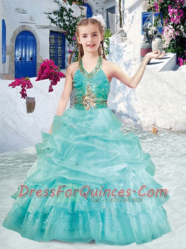 Classical Halter Top Little Girl Pageant Dresses with Beading and Bubles