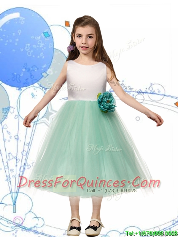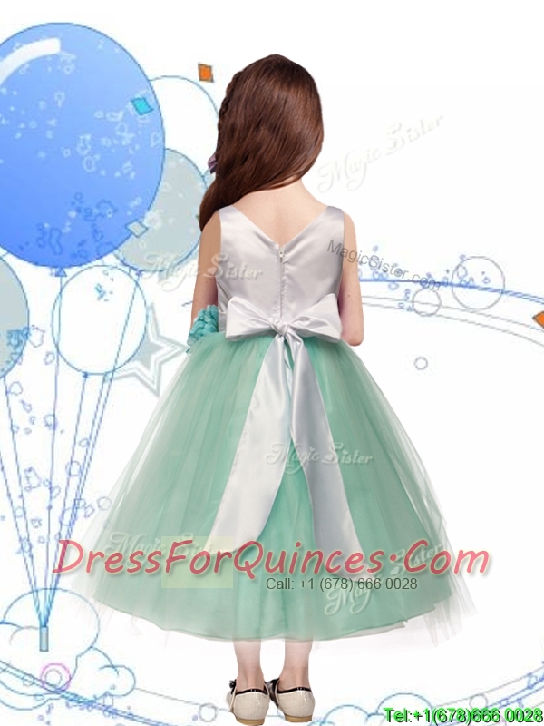 Comfortable Scoop Hand Made Flowers and Bowknot Mini Quinceanera Dresses in Apple Green