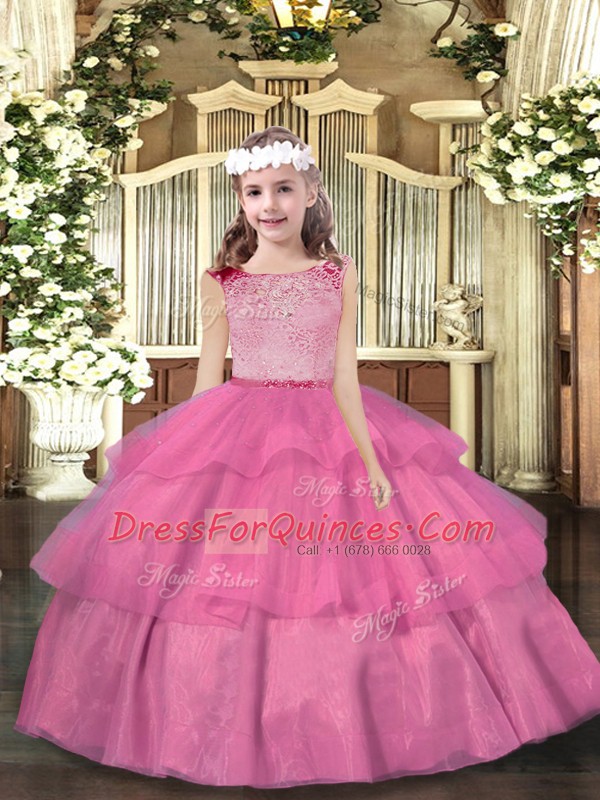 Custom Designed Pink Scoop Zipper Beading and Ruffled Layers Pageant Gowns For Girls Sleeveless